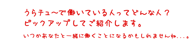 うらチュ~で働いている先輩をピックアップしてご紹介します。いつかあなたと一緒に働くことになるかもしれませんね...。