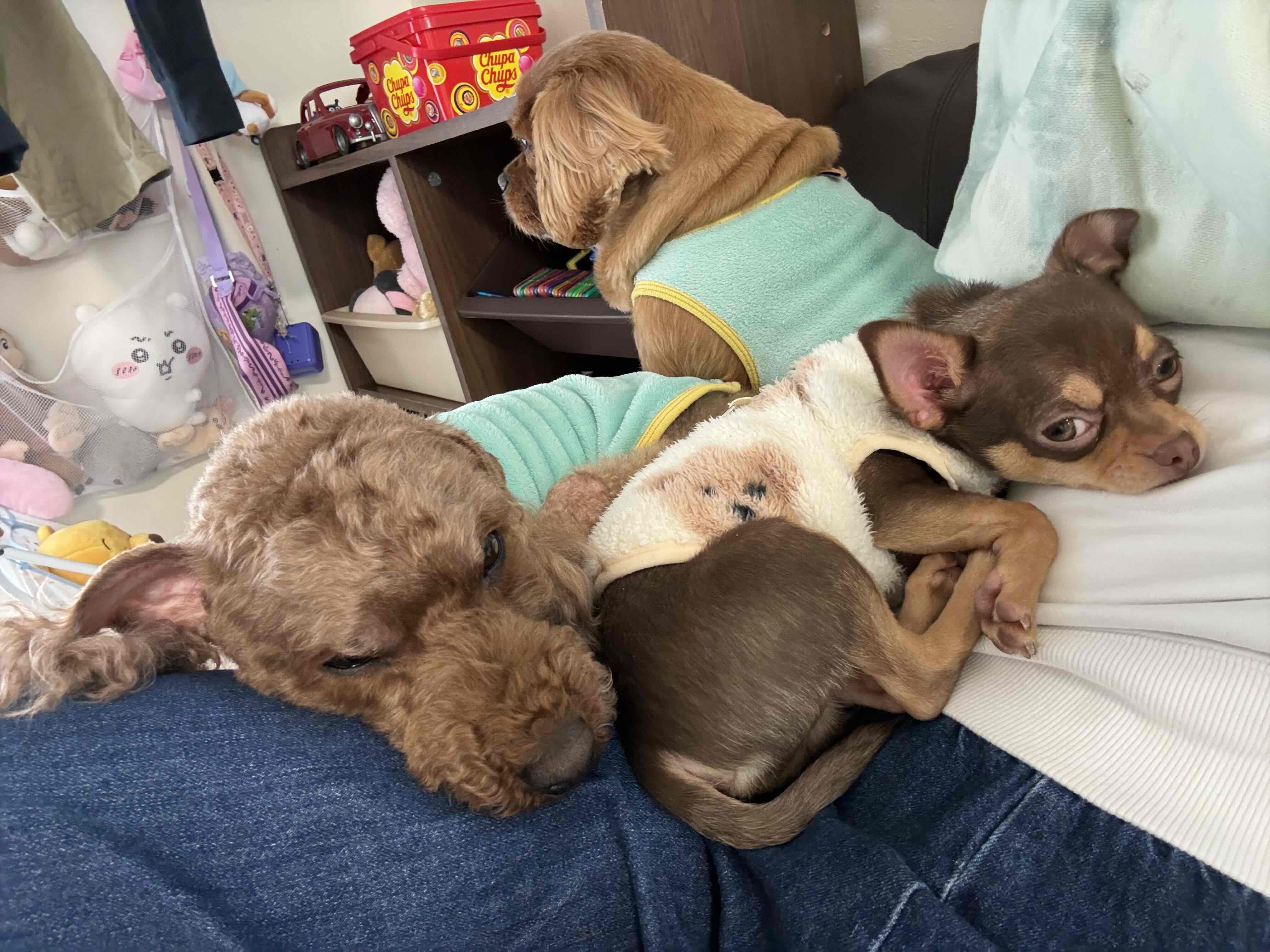 もっと先住犬の2匹に慣れてもらいたいなと思ってます。