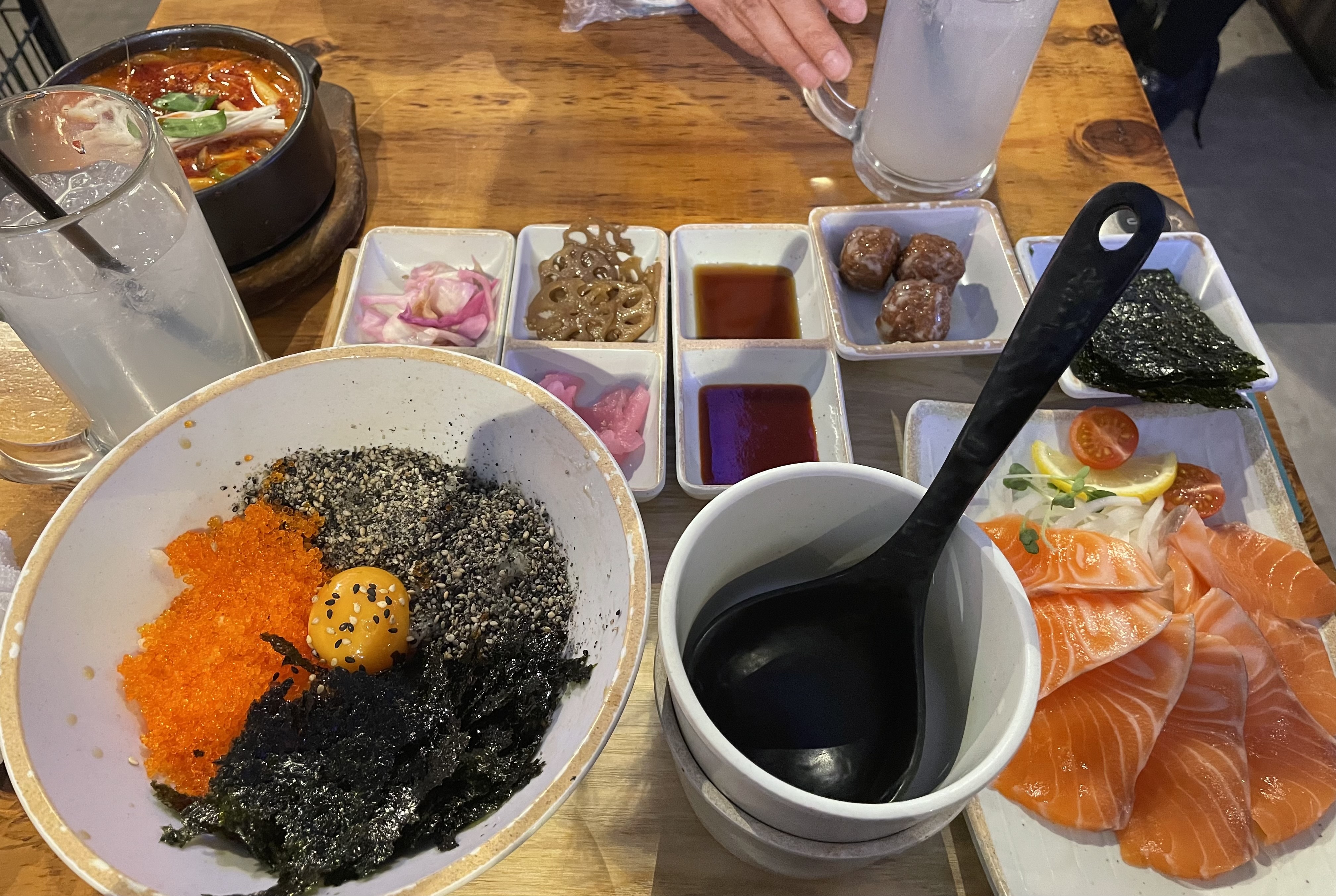韓国料理もたくさん種類があって迷ってしまいましたが今回はサーモンなんとかを食べました!