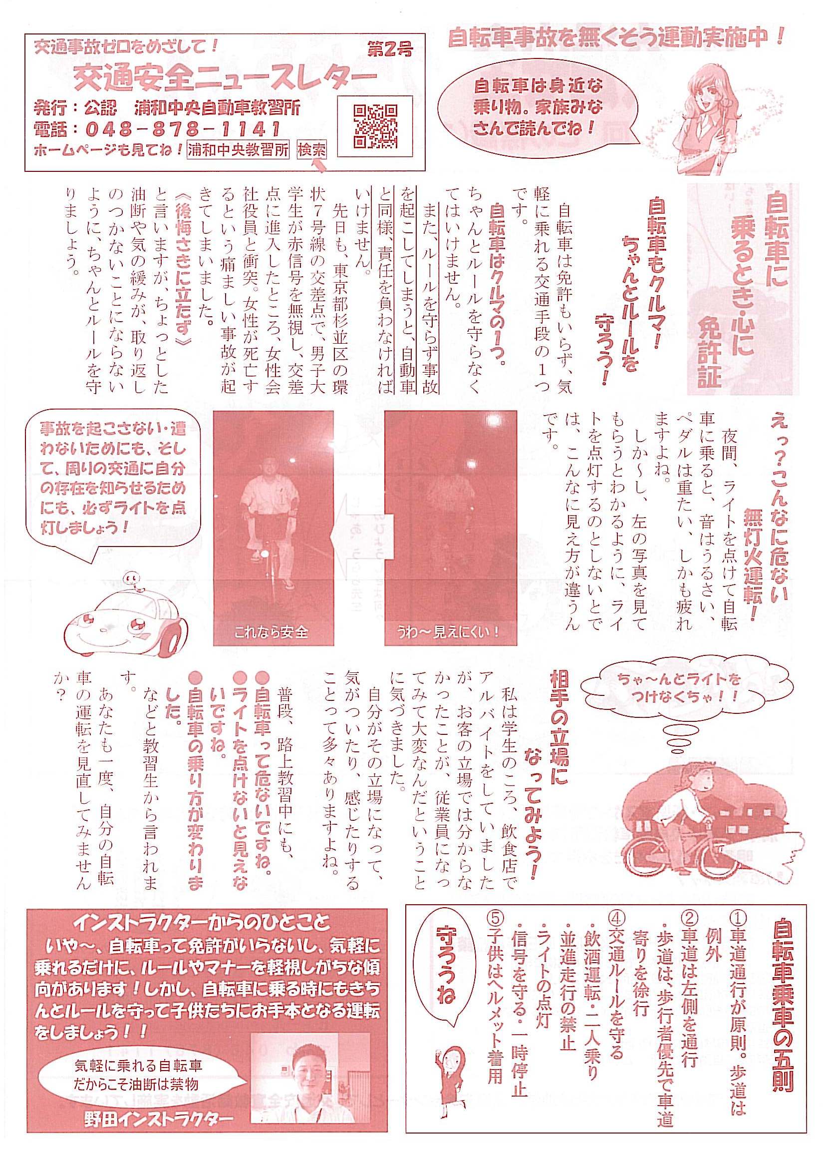 浦中では今後もこのような講習会などを通じて、地域のみなさんの交通安全意識の高揚に努め、交通事故0の社会の実現にスタッフ一同努力して参ります。