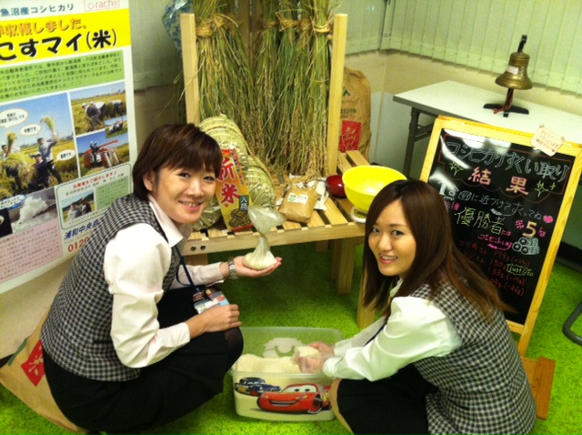ただ今、うらチュ~のロビーではそのお米のすくい取り大会を実施しております。すくったお米を差し上げるのに加え、その月ごとに大会優勝者には何とコシヒカリ5キロをプレゼント!どなたでもご参加頂けますので、みなさんのご参加をお待ちしています!