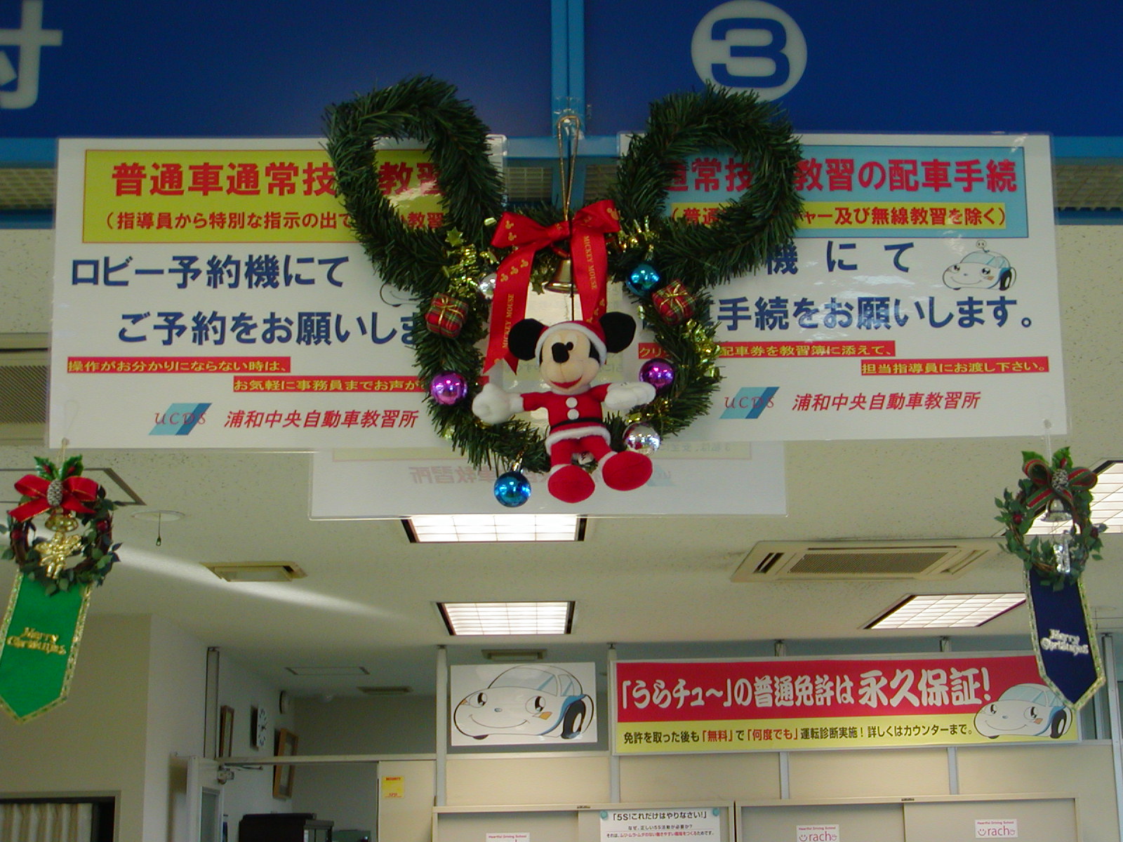 今、うらチュ~はクリスマス一色! えっ!ちょっとクリスマスには気が早いって!? 楽しいことは長い間楽しみたいので、もうスタートしました。 教習生の皆さんやご来所頂いた皆さんをかわいらしい冬の主役達がお迎えします。