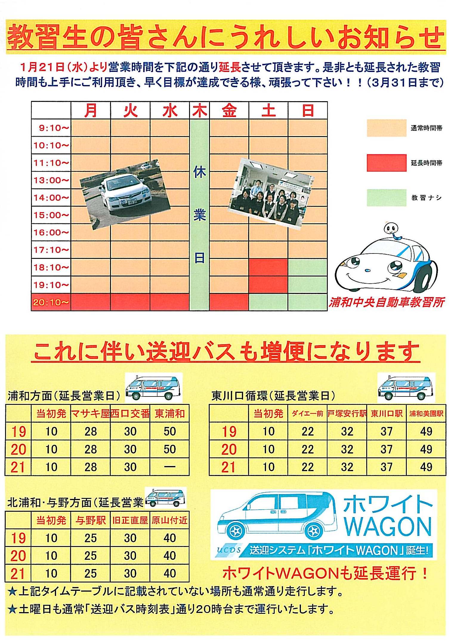 浦中では1月23日(金)より平日1H、土曜日2Hの延長営業を行っています。