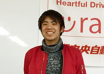 近藤さんを担当した野本指導員 僕の担当は野本先生でした。始め、かなり緊張してしまって、多分ガチガチだったんだと思います。そしたら野本先生が、教習とは関係ない話で緊張を和らげてくれたのが印象に残っています。おかげでリラックスして教習ができました。野本先生とはその後もプライベートな話が色々できるようになったのが嬉しかったです。 - スタッフ