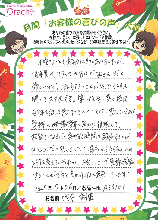 「最初は不安もあったけど、皆さん優しくて、たくさん質問しても全然大丈夫でした。うらチュ~で学べて本当に良かったです!」